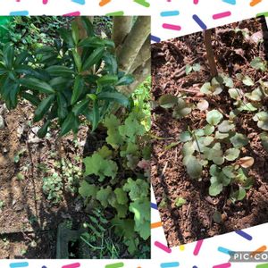 万両の根元に沢山の新芽🌱🌱 朝から昼まで草むしりの日でした(:3_ヽ)_ 色々発見がありました💦 これは何? 万両の下だから万両の芽⁇ 落ちた実がみんな芽吹いたのかな(,,ºΔº,,*)