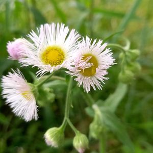 ハルジオン 蕾が恥ずかしそうに下を向き、ちょっとピンクがかっている花びら🎀💕💓💗が可愛い花です。 北アメリカ原産。