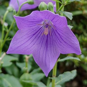 お散歩で、私の大好きなキキョウが咲いていました♪ 星形の花が可愛いキキョウ。花が開いたばかりなので、雌しべは閉じています。 雄しべが先に成熟する「雄性成熟」タイプで、他花受粉の特徴を観察しやすい植物とのこと。 1.開花の後、雄しべは葯を開き花粉を出す。 2.花粉は花柱の周りに生えた毛につく。 3.葯がからになると雄しべは倒れ、花柱から離れる。 4.めしべの柱頭は成熟していないため、自家受粉は行われない。 5.葯がからになり、雄しべが花柱から離れた後、柱頭が開く。 6.既に雄しべは花粉がないので、受粉は別の花の花粉により行われる。 大好きなキキョウ、紫と白の2色を以前育てましたが、 クロウリハムシという、ちょっと見は可愛い虫がしつこく花びらを食べに来ました。特に白のキキョウを目がけてやってきます。名前の通り、ウリ科の植物が近くにあると発生しやすいとのことで、家では毎年キュウリとミニトマトを育てているので、キキョウとの共存は大変そうなので、育てることは諦めました😭 ところで、5月にupしたピンクの「すかし百合・ロリポップ」が「秋植え球根コンテスト」の優秀賞になったと、つきみさんにお知らせいただき、ビックリ😲!! お知らせいただかなければ、気がついていなかったと思います😆 GSの皆さんには、いつもおせわになっています♪ そして、今まで賞を獲得した方々のpicも見逃していることが多いような気もするので、🏷️受賞作品もフォローしました。