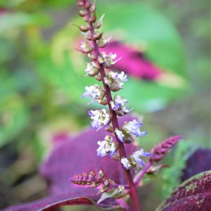 「コリウス・レインボーミックス」の種から育ててお花が咲きました♪ 紫と緑のシックな葉に、ブルーと白のお花です💙 コリウスは種から育てる種子繁殖の「実生系」と挿し木で増やす「栄養系」があり、種子系は種が付くために小ぶりで、花も咲きます。 以前、栄養系のメモリアルダンスを育てましたが、栄養系は花がつきにくいかわりに、大きくて、美しい種類が多いですね。 シソ科コリウス属。 家のコリウスは種からなので、さっそくお花が咲きました。 カラーリーフとして楽しみたいので、なるべく花は咲かせず、こんもりと大きな株にしたいと思い、まめに上の方をチョンと切って摘芯をしていましたが、見落として1株、シソ科らしい可愛いお花が咲きました💓
