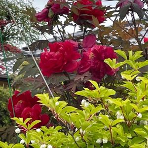 ご近所の、垣根の牡丹が、開花してました。 花が上の方で、お顔を見せて貰えません。😌💓