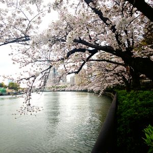 「なぁなぁ、ここ大阪城と桜一緒に映るんとちゃう?」 「ほんまやっ❗️」 映してみたものの…… 空が、どんより 老眼なので、確認せずに撮ってて。あの時、確認すれば良かったぁ‼️ と、少し後悔致しました。 眼鏡を出すのが、めんどくさい私……