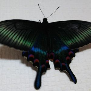 昨日、孫と歩いてホームセンターへ虫取り網を買いに。 帰りに今年の捕獲1号はこの子。 カラスアゲハにしては大きい羽が綺麗で❤️ アオスジアゲハとは、柄が違うし。 見た事無い綺麗な蝶々のお名前は?