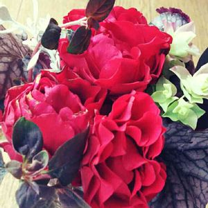 今月のアレンジメント♡ アンティーク調に仕上げました♡ オトナテイスト♡ 黒色の珍しいパンジーがあったのでポイント入れてより一層オトナな感じに仕上がりました♡