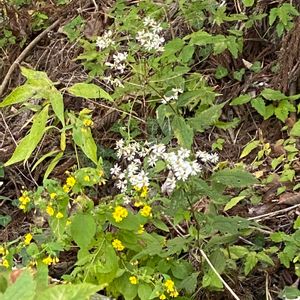 秋の山地で会えた花と実⛰️ ①、② ゴマナ ③ カンボク 大正池〜田代池〜河童橋を散策中に 出逢えた植物たち。 標高1,500mとは言え、歩いていると汗ばんできます🏃♀️🏃♂️ ①、② ゴマナ 秋に咲く野菊は様々で識別しにくいです☺️ やっと判明しました 鋸歯状の葉はゴマの葉似? 大きな散房状の花序になり直径15mmの小さな頭花を多数つけています。 シラヤマギク→ゴマナ(変更) zznecoさんありがとうございました🙇♀️ ③カンボク すぐ近くで風で揺れる赤い実を見つけました🍒 不明な実→カンボク そらさん、zznecoさん、ハイジさん ありがとうございました🙇♀️