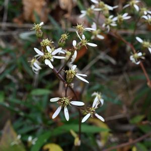 野趣溢れるシラヤマギク🌼 まばらに付く舌状花が 自然の森の中にピッタリの雰囲気でした🥰💕🎶 シラヤマギク キク科 シオン属 茎や葉に短毛が生え、ざらつく。葉は下方ほど、大きく、葉柄も長い。 下部の葉は、長さ10~20㎝、幅10~20㎝の心形。 葉柄は長さ10~15㎝、翼があることが多い。 葉の鋸歯は不規則で粗く、やや重鋸歯状。 上部の葉は先が尖った卵形、小さい。 頭花は白色、直径約2㎝、舌状花は4~9個、数が一定せず、まばらにつく。 総苞は直径5~6㎜、鐘形、総苞片は3列。 花の後、冠毛が目立つ。 痩果は長さ2.5~3(4)㎜、冠毛は褐色を帯び、長さ3.5~4.2㎜。