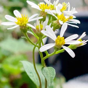 おはようございます😊 シラヤマギク(白山菊)のお花です。 白いお花のシュウカイドウをお譲りしたお礼にと、山野草好きの花友さんからいただきました。