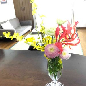 おはようございます〜 市の陶芸講座に通っていて、、昨夜作っていた作品が出来あがりました 家にある花を早速自作の花瓶に挿して、幸せ気分です🥰