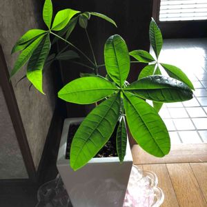こんにちは〜 ダイソーからのパキラさん💚 観葉植物の中で1番好き💓 置き場所を変えたら、陽射しを浴びた姿がとても可愛い💕
