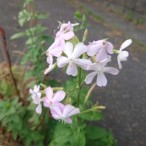 この花何でしょう? 「サボンソウ」 「サポナリア」のようですね 皆さんありがとうございます シレネサクラコマチ ですかね? ご存知の方よろしくお願いいたします