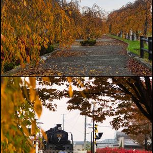 紅葉🍁落葉2 朝もやの 「しだれ桜遊歩道」