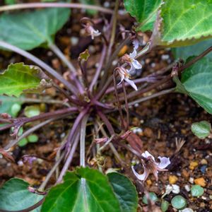 前回中部地方産のゲンジスミレを掲載したが、こちらは四国地方産。 もともとは愛媛県で一番最初に発見され、イヨスミレと命名されていたものが、他地方での発見に伴いゲンジスミレに統合されたという経緯がある。 ラベルの通り、現在でもイヨスミレとして他のゲンジスミレと区別して流通されているが、他地方産株との違いは特に無いような気がする… 一説によると、ゲンジスミレは他スミレと異なり移植に弱い(このため播種もポットではなく鉢に直接行う)のだが、イヨスミレはその弱点があまり無いとか。 花が付いているのが最初に購入したオリジナル株、上と右に見えるのは室内栽培で種から育て移植した子株(葉が間延びしてしまった…)。 そして周囲には昨年の零れ種から発生した今年の新芽もちらほらと。