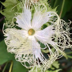 雨が上がった午後、久しぶりに近所の散歩コースへ・:*+.+ 花先がレース状に裂けた妖艶なお花に出会いました(*'▽'*)💕 *キカラスウリ* 日没後から開花して翌日の午後頃まで 咲いています。9〜11月に黄色の果実が付きます💛