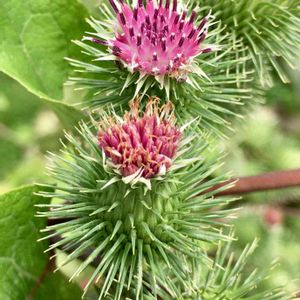 初めて見ましたヽ(´▽`)/💖 イガイガ*トゲトゲの頂上にアザミに似たゴボウのお花🌸