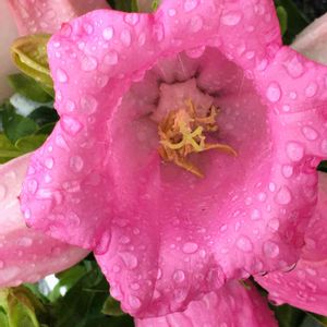 大きなお口を開けて…💋 奥までしっかり見えますよ😅 小雨降る中で咲いていた元気な カンパニュラ・スターベル🔔