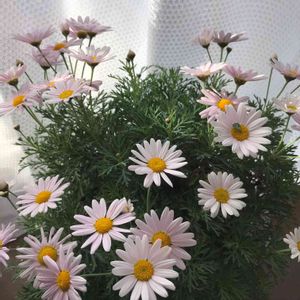 福岡生まれのマーガレット、リビングで咲いてます🌸🌸🌸 春から何度も切り戻しては咲き🌸楽しませてくれました🎶 花友さん、ありがとう❣️