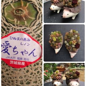 愛ちゃんメロン🍈ネーミングの可愛らしいこと (*゚v゚*)🦔🦔多肉さんポーズも貼っとこ✿*:✿*: