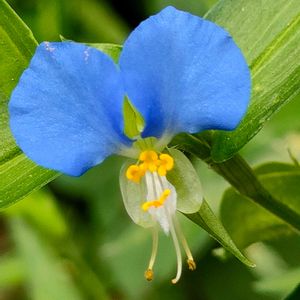 My Garden ツユクサ ツユクサは、ツユクサ科ツユクサ属の一年生植物。日本を含む東アジア原産で、畑の隅や道端で見かけることの多い雑草である。鮮やかな青色の花は朝に咲き、昼にはしぼむ。他のツユクサ属の植物と同様、雄しべは6本あり、上側の3本、下側中央の1本、下側左右の2本で形態が異なる。 ツユクサの花言葉は「尊敬」「なつかしい関係」「恋の心変わり」「密かな恋」などがあります。