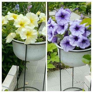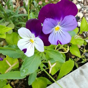 6月19日 MyGarden ビオラ バンジー・ビオラゾーン以外から生えてきた ちょっぴり色違いの兄弟(,,>᎑<,,)カワイイ*•.❥* 左の子のアゴは💜右の子のアゴは割れてます…(¯―¯٥)