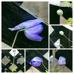 6月23日 MyGarden デルフィニウム 右上・右中昨日撮影の蕾 後は今日撮影1日でこんなにも開きかけています (。 >艸<)フフフ💕 (,,>᎑<,,)カワイイ*•.❥*