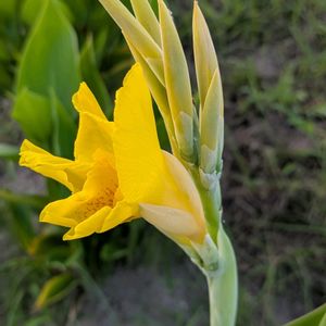 おはようございます😉✨ ①②③④ カンナ 3月に苗を畑に植えたのが 咲きかけました ⑤キキョウ センチメンタルブルー 昨年10/5にお迎えし 畑の花壇に植えたのが 咲いてました 草に隠れてて 気が付かず 😅 🏷️2021年同期の会 🏷️心にメローイエロー💛 🏷️碧い軌跡💜 🏷️太陽がくれた季節a☀ 🐰💗