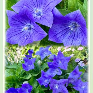 キキョウ💙💜センチメンタルブルー お花が終わった時に切り戻し。 二番花がまた咲き始めました。 葉っぱに埋もれて咲いていたので、ほじくり出してあげました😆💙💜