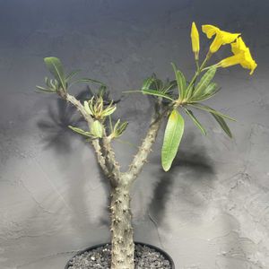 フリーセアが開花中 黄色い花は2日もすると茶色く萎んで、中から蜜が少し垂れてきます。1日おきに1、2個のペースで咲くので、咲き終わるのは2週間〜1ヶ月先の計算。細く長く咲くのは受粉の確率を上げるため? 自家受粉できるか不明ですが、お花が開くたびせっせと花粉をつける日々です🐝