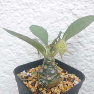ドルステニア フォエチダ(モンスター) こぼれ種で増えてます。自家受粉の醍醐味ですね。 1枚目が親株。カエルに激突され、下葉がもげたけれど元気。 2,3枚目はこぼれ種グループ。オベサの隣のは、もう少し大きくなってから移植します。