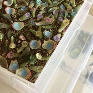 フライレア属 士童 種ができていたので採種。3株の並びがタコ顔に見えます🐙(笑)
