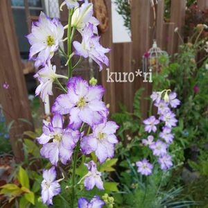 去年種まきした千鳥草のカンヌブルーピコティが開花してとっても可愛いです💜 八重咲きでヒラヒラ風にそよぐ姿が良いですね‼️😆 この季節の縦に伸びるお花の定番になりそう🎶