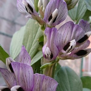 空豆の花💜 苗を4個 購入 それぞれが つぼみも いっぱい つけてます😊 実りが 楽しみ✨✨