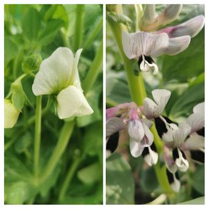スナップえんどうと、空豆の花が咲いていました💮 ここから実が食べられるまでけっこう日にちがかかって、待ち遠しい❕