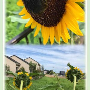 こんにちは。 ヒマワリ🌻後ろ姿😅 何故かみんなお隣さんの方見てます😆笑笑 無理やりこちら向けてパシャリ🤳