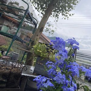 こんばんは😌 数ヶ月前に強剪定したポポラス… 葉が出てきて花火のようです🌿 ルリマツリ… 散り出しました💜