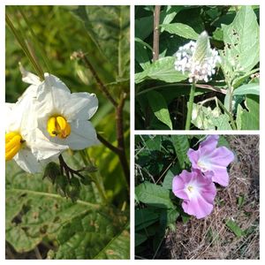 この2日間は真夏日で30℃越えです。 犀川サイクリングロードで出会った野草達 左 ワルナスビ 右上ヘラオオオバコ 右下ヒルガオ