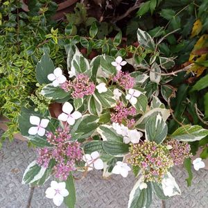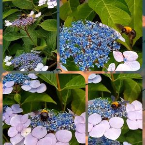 おはよう ございます。 ガクアジサイで、朝から一生懸命に、マルハナバチ🐝がお仕事中です。