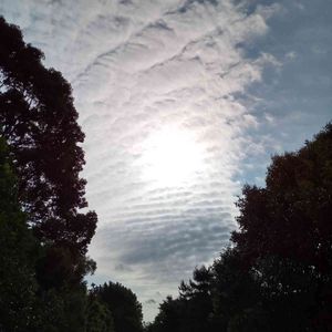 今朝の散歩道です。 流れる☁… 水元雲☁と名付けようかしら?こんな雲☁多いです。