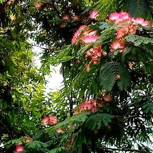 おはよう ございます。 今朝の散歩道です。 水元公園、三郷口に背の高い合歓の木が有り、開花しているのを、見つけました。