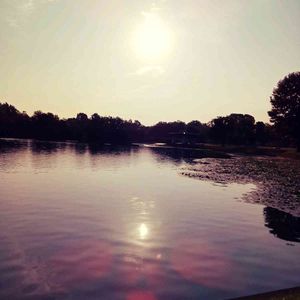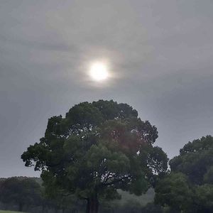 今朝の散歩道です。 水元公園、中央広場の🌳の上に🌄が、出て来ました。
