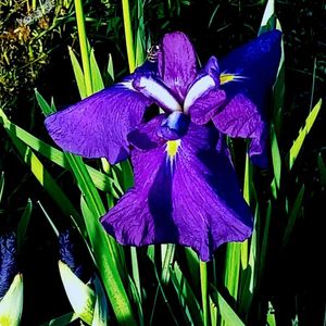 今朝の散歩道です。 菖蒲畑の、色の濃いのを、撮りました。