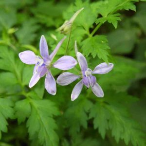 今朝の散歩道です。 雑木林の入口に、咲いていました。 芹葉飛燕草 [セリバヒエンソウ] デルフィニンと言う毒を持ち、間違えて食すと、死に至るそうです。 繁殖力が強く、増えてしまうらしいです。 花は、小さく可愛いですが、残念です。