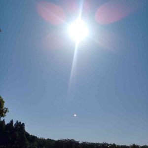 今朝の散歩道です。 水辺の写真を撮ると、お空にお花が咲いていました。