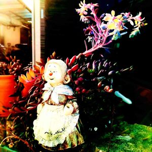おはよう ございます。 以前、引っ越して来る前に、撮りました。 水元公園近くの、路地入ったお宅の塀の上に、多肉植物とふくよかなおば様の置物が、通る度に目に入りましたので、🤳して来ました。