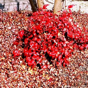 散策中に、通り道のお宅の花壇が、赤一色です。