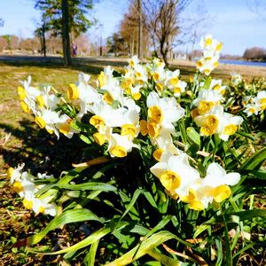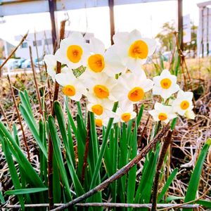 散策中、歩道脇の空き地に、水仙の花が咲いていました。
