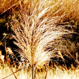 昨日散策中に、問田川の河川敷の葦の穂を撮りました。