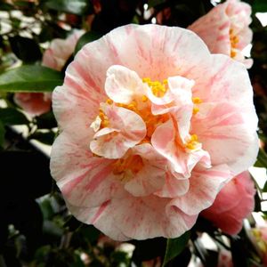 散策中に、通り道のお宅のお庭に、お花が小さい椿が植えられていました。