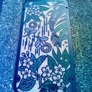 一の坂川沿いのマンホールの蓋絵です。 場所にちなんだ、桜🌸と蛍が有ります。