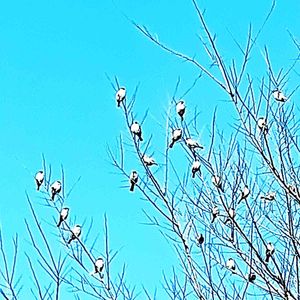 散策中、通り道のお庭の枝に、ハクセキレイが止まりました。
