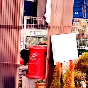 散策中に、通り道の事務所の郵便受け箱が、小型の📮が置いてありました。